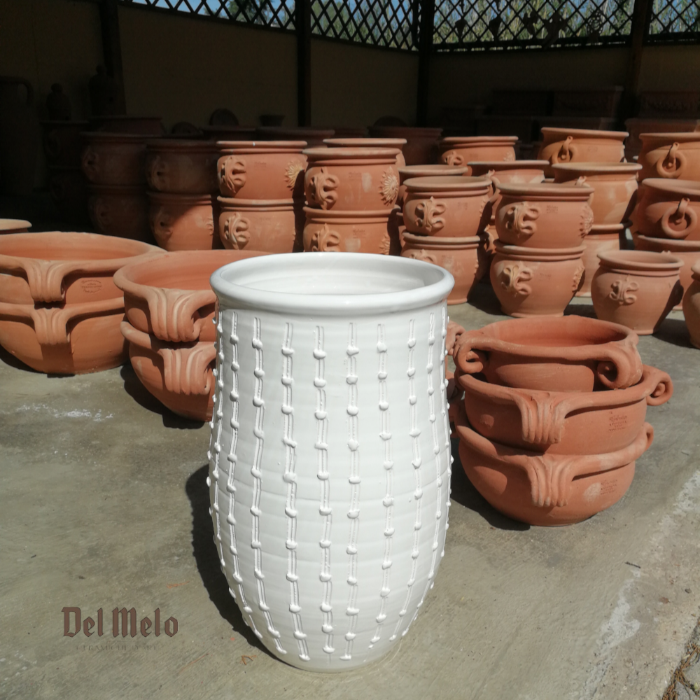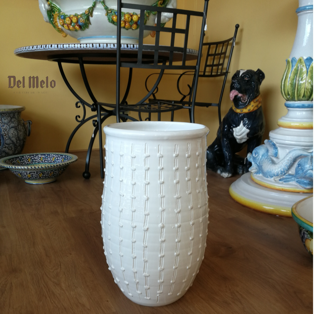 Portaombrelli Vaso in Maiolica Toscana linea Cactus Bianco.