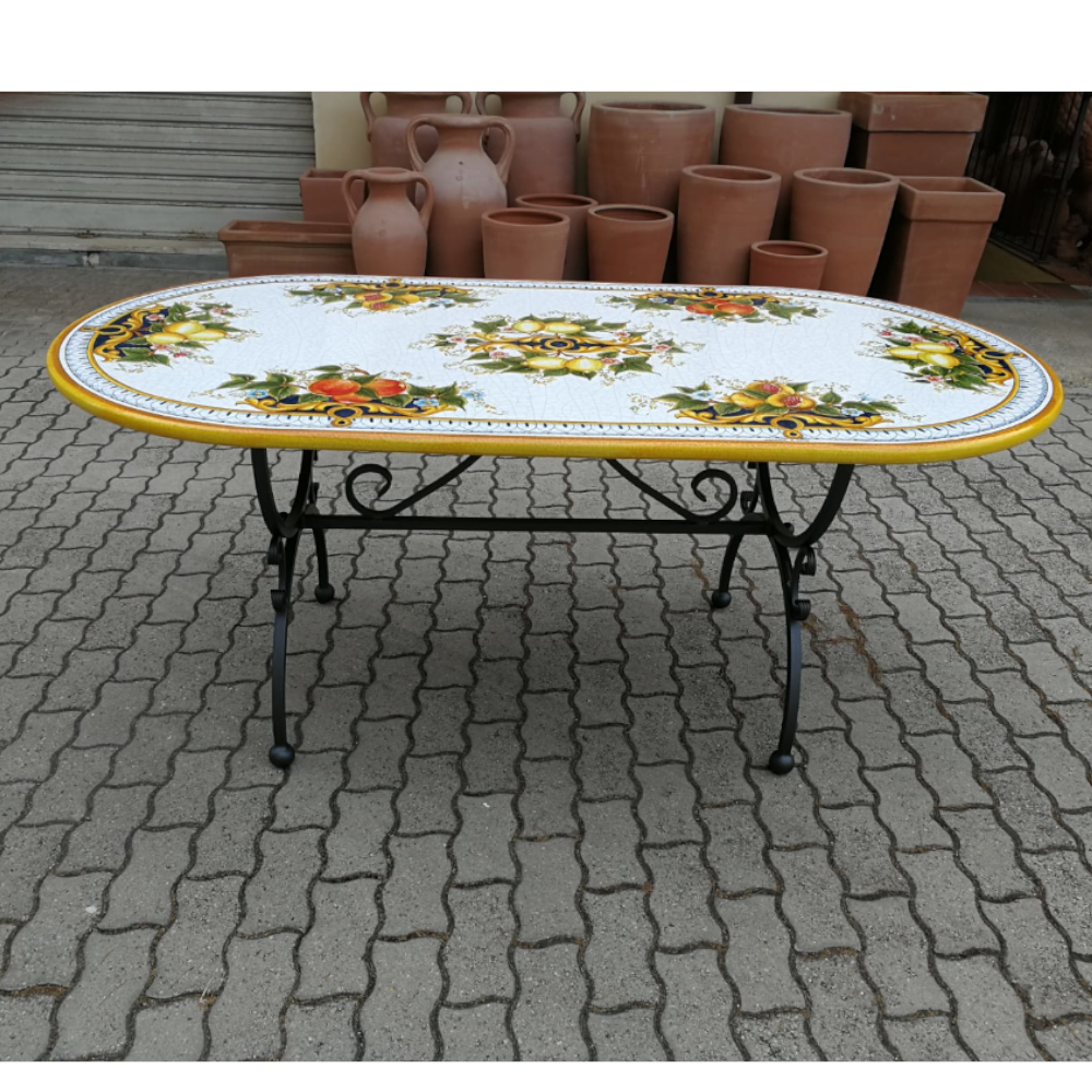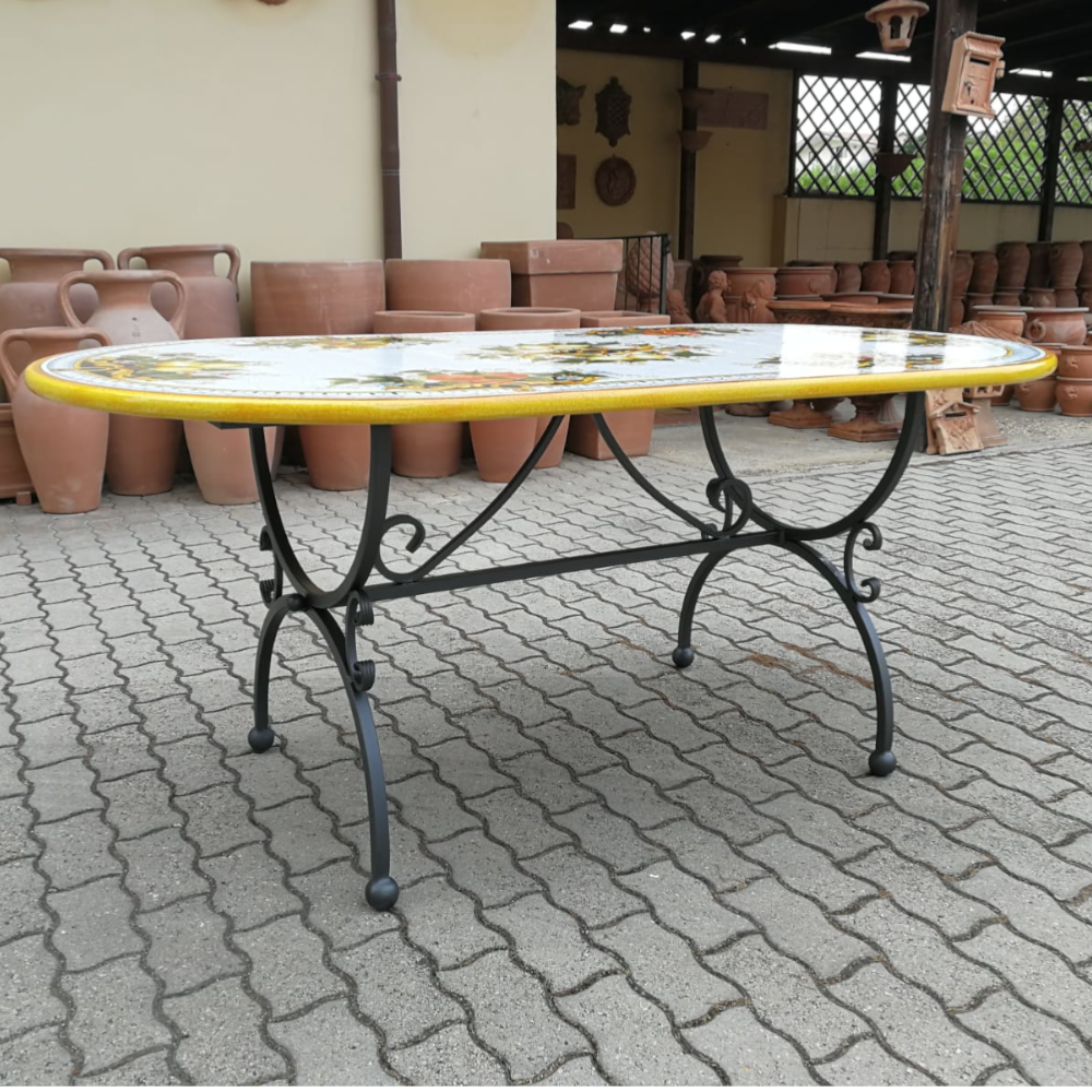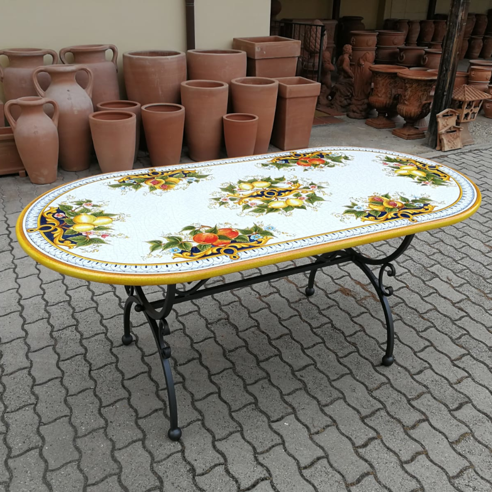 Tavolo in Pietra Vulcanica dipinta a mano dai nostri artigiani di Deruta.