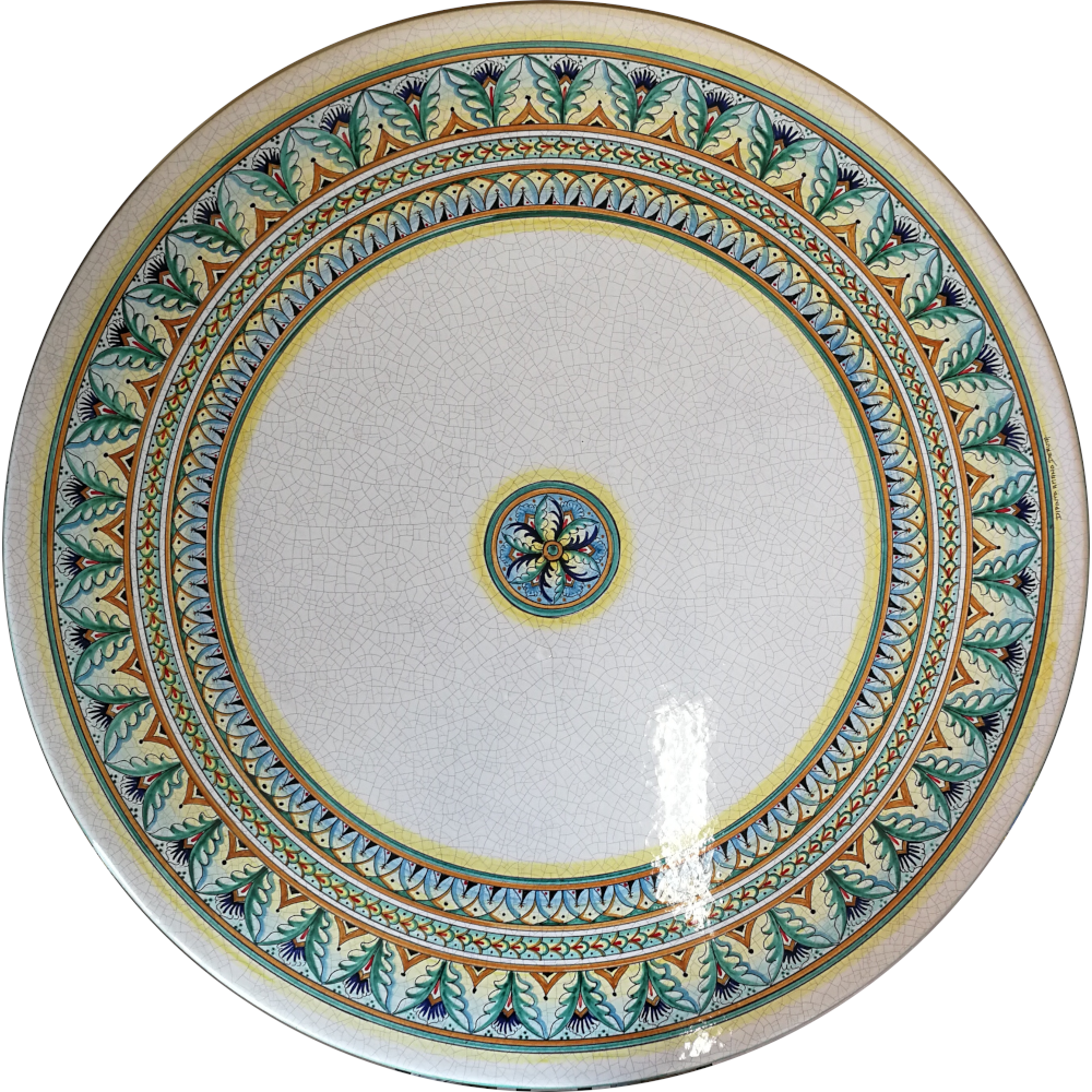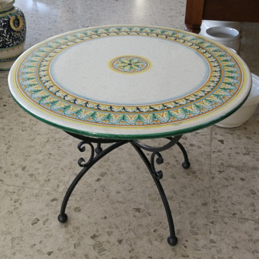 Tavolo in Pietra Vulcanica dipinta a mano dai nostri artigiani di Deruta.